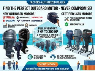 New and Used Outboard Motors from All Top Brands — One Place, Worldwide DeliveryBoats - Ships - - April 27, 2026Finding the right engine should never be a compromise. We are a factory-authorized dealer with a full inventory of outboard motors for sale from Yamaha, Suzuki, Honda, Tohatsu, Mercury, and Evinrude ranging from 2 HP to 300 HP in both 2-stroke ...